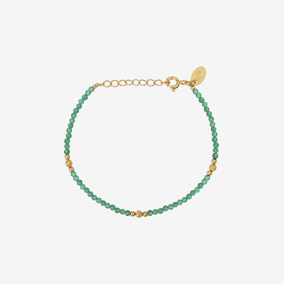 Le bracelet JERI est un bijou raffiné, doré à l'or fin 24 carats, qui s'inspire de la beauté de Jericoacoara, une plage paradisiaque du Brésil. Ce bracelet se compose de perles en Agate verte, une pierre naturelle reconnue pour ses propriétés d'équilibre et de chance. Les perles sont délicatement entrecoupées de petites perles dorées, créant un contraste harmonieux et élégant.