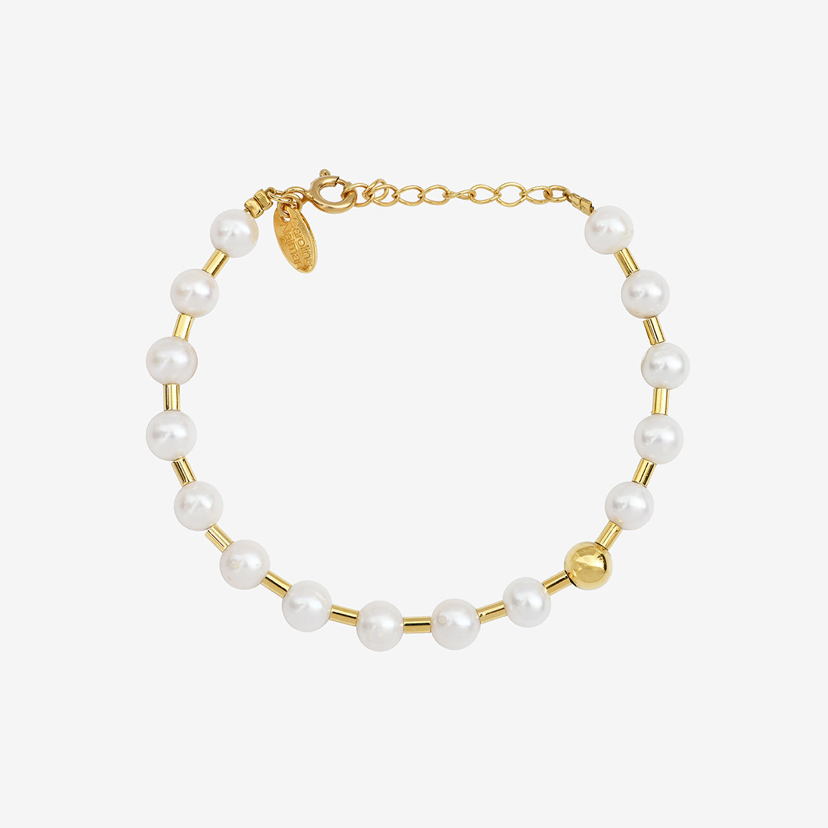Le bracelet doré KIARA est un bijou raffiné qui se distingue par son élégance intemporelle. Réalisé en doré à l'or fin 24 carats, il est orné de perles de culture blanches qui ajoutent une touche de luminosité et de sophistication à votre poignet.