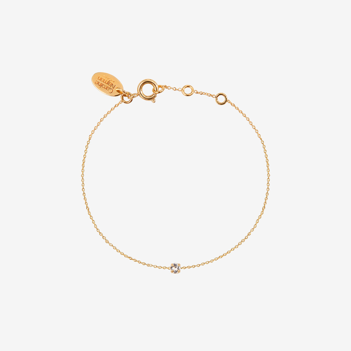 Le Bracelet doré - PARIS de la marque Caroline NAJMAN® est une pièce de joaillerie raffinée, dorée à l'or fin 24 carats. Ce bracelet délicat arbore un cristal rond de 2 mm de diamètre, qui illumine subtilement votre poignet.