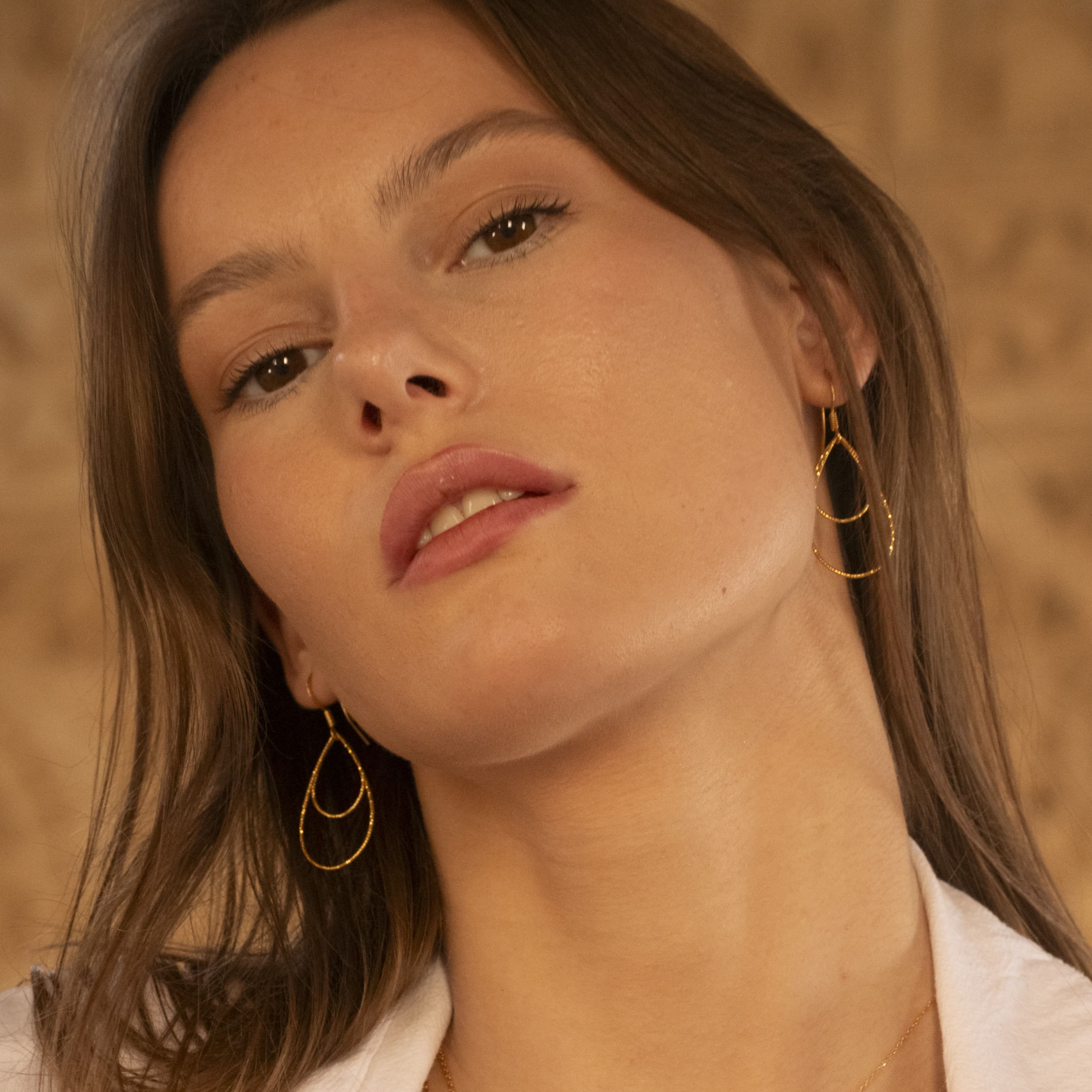 Le design de ces boucles d'oreilles se compose de deux formes en goutte imbriquées, créant un effet de superposition moderne et délicat. Leur légèreté assure un confort optimal tout au long de la journée, que ce soit pour une occasion spéciale ou un usage quotidien.