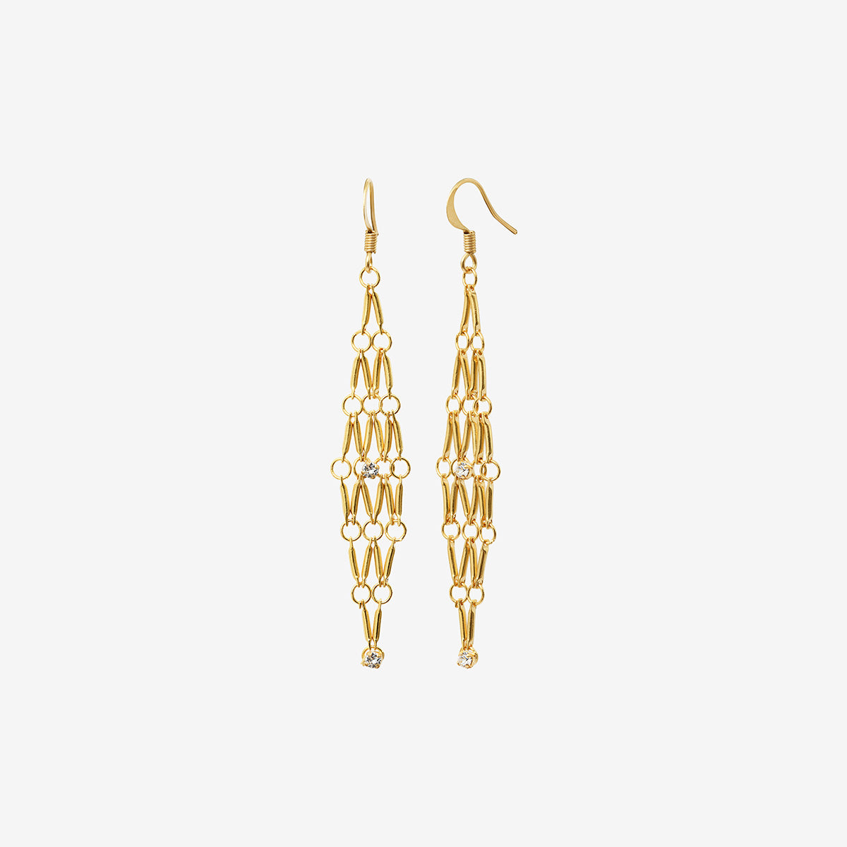 Les boucles d'oreilles dorées petit modèle - BARBARA sont un véritable bijou d'élégance avec une finition dorée à l'or fin 24 carats. Leur design contemporain se distingue par un délicat tissage de chaînes ornées de cristaux qui capturent la lumière, ajoutant une touche majestueuse à votre look.