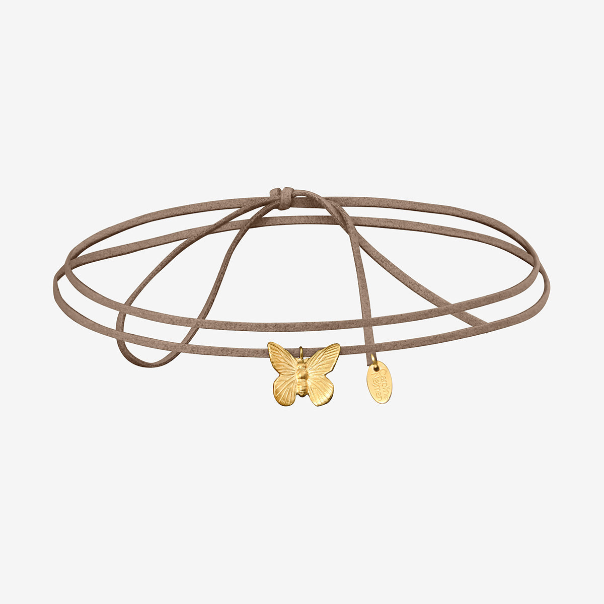 Ce modèle petit format est idéal pour un look délicat et raffiné. Il peut être porté de différentes manières, en ajustant le cordon pour un style plus ou moins serré autour du cou. De plus, des variations de ce modèle, comme des bracelets assortis, sont également disponibles, permettant de compléter votre ensemble avec le même design de papillon.