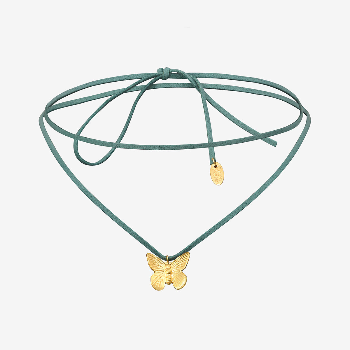 Le collier cordon doré petit modèle de la collection BUTTERFLY par Caroline Najman est un bijou délicat qui allie élégance et modernité. Ce collier se compose d'un cordon en simili cuir de couleur vert d'eau, apportant une touche de fraîcheur à votre look.