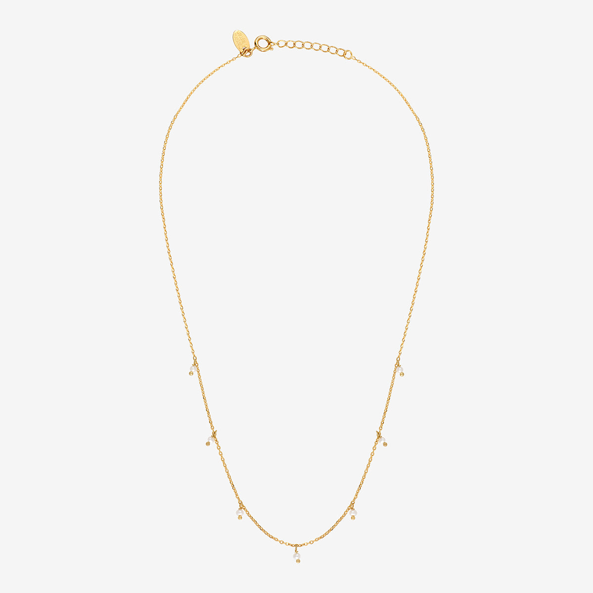 Le collier court Milady est un bijou raffiné, doré à l'or fin 24 carats. Sa chaîne délicate en laiton présente des maillons fins, créant un design léger et aérien. Ce collier est orné de sept petites perles de culture blanches qui pendent avec élégance, ajoutant une touche de sophistication et de féminité à votre look.