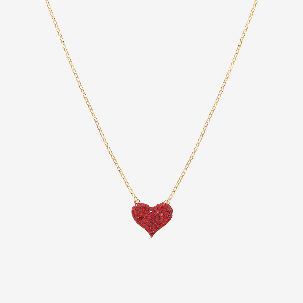 Le collier doré Heart de la collection Kuchi est une pièce incontournable pour sublimer votre style. Ce bijou, doré à l'or fin 24 carats, se distingue par son pendentif en forme de cœur, orné de pierres rouges scintillantes qui lui confèrent une allure élégante et romantique.