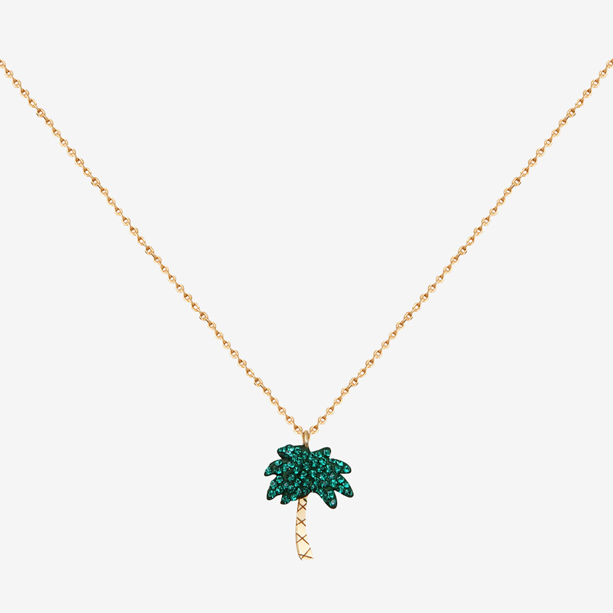 Le collier doré Palmtree de la collection KUCHI est un bijou qui allie élégance et originalité. Doré à l'or fin 24 carats, ce collier met en avant un pendentif en forme de palmier, symbole de l'été et des vacances, qui apporte une touche ludique à votre style.