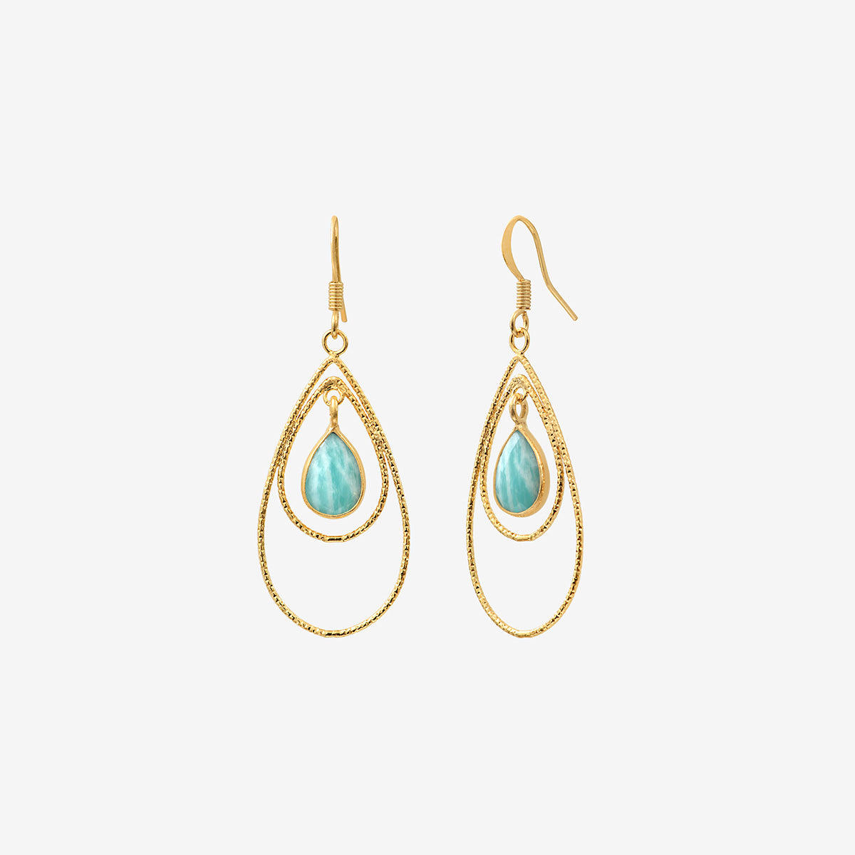 Les Boucles d'oreilles dorées SELMA de la marque Caroline Najman sont un accessoire incontournable pour celles qui recherchent élégance et sophistication. Fabriquées en laiton avec une finition dorée à l'or fin 24 carats, ces boucles d'oreilles sont ornées de magnifiques pierres d'amazonite, qui apportent une touche de couleur turquoise vibrante.