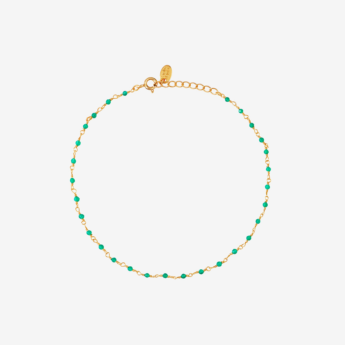 Ce modèle se distingue par son design élégant, orné de petites perles de quartz vert, apportant une touche de couleur dynamique. Le quartz vert est réputé pour stimuler l'élimination des toxines et renforcer la volonté, tout en étant associé aux signes astrologiques de la Balance, du Capricorne et du Cancer.