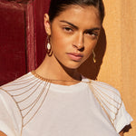 Le bijou d'épaule doré GRACE est une pièce statement qui allie sophistication et modernité, parfaite pour celles qui souhaitent se démarquer avec style.