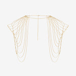 Le bijou d'épaule doré GRACE de la marque Caroline Najman est une pièce élégante et audacieuse qui apporte une touche unique à n'importe quelle tenue. Ce magnifique bijou se compose de plusieurs chaînes dorées délicates qui se drapent sur les épaules, créant un effet visuel captivant.