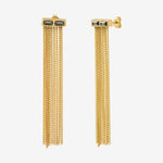 Conçues en laiton, ces boucles d'oreilles pendantes présentent un design long et fluide, avec des chaînes suspendues qui créent un effet de mouvement captivant. La partie supérieure rectangulaire est ornée de quatre cristaux façonnés en forme de baguette, ajoutant une touche de glamour à votre look. Les cristaux, d'une couleur gris, sont fabriqués dans des usines d'Autriche, garantissant un contrôle qualité rigoureux.