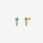Chaque boucle d'oreille est ornée de trois cabochons de pierres fines, dont la teinte turquoise apporte une note de fraîcheur. Ces pierres, en particulier l'amazonite, sont réputées pour évoquer la joie de vivre et favoriser la communication. En astrologie, l'amazonite est associée au signe du Sagittaire.