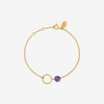 Le bracelet FIDJI de la marque Caroline Najman est un bijou doré à l'or fin 24 carats, alliant élégance et raffinement. Sa conception délicate présente une chaîne minimaliste, ornée d'un cercle ouvert et d'une perle de couleur violette, apportant une touche de sophistication.