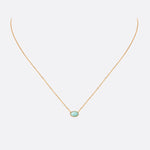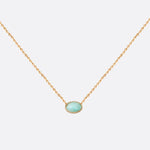 Le collier doré CAB OVALE est un bijou raffiné qui allie élégance et délicatesse. Doré à l'or fin 24 carats, il arbore un design subtil avec une chaîne fine et un cabochon ovale de pierre fine en amazonite, mesurant 4x6mm. La couleur unique de l'amazonite, un bleu-vert apaisant, évoque la joie de vivre et favorise la communication.