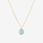Le collier doré SERTI PM est un bijou élégant, doré à l'or fin 24 carats. Ce modèle se distingue par son pendentif en calcédoine bleue, une pierre semi-précieuse qui apporte une touche de couleur douce et apaisante, idéale pour illuminer n'importe quelle tenue.