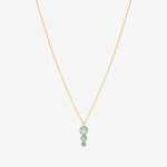 Le collier ANDREA est un bijou raffiné, doré à l'or fin 24 carats, qui allie élégance et délicatesse. Son design unique est sublimé par un sertissage clos qui met en valeur trois cabochons en amazonite, une pierre réputée pour sa joie de vivre et ses propriétés apaisantes.