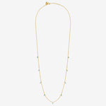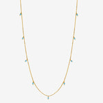 Le collier doré long - MILADY est un bijou raffiné, doré à l'or fin 24 carats. Sa chaîne fine est embellie de petites perles de turquoise, créant un mouvement délicat qui évoque une légèreté pétillante.
