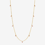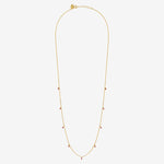 Le collier doré long - MILADY est un bijou d'exception, fabriqué en laiton doré à l'or fin 24 carats. Sa chaîne fine est ornée de petites perles de tourmaline rose, créant un mouvement délicat qui évoque une légèreté pétillante.