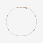 Ce collier se distingue par ses perles blanches, qui apportent une touche d'élégance et de légèreté. Sa longueur est ajustable de 38 à 41 cm, permettant un port confortable et adapté à toutes les morphologies. La chaîne fine et délicate met en valeur les perles et les détails dorés, créant un effet lumineux et sophistiqué.