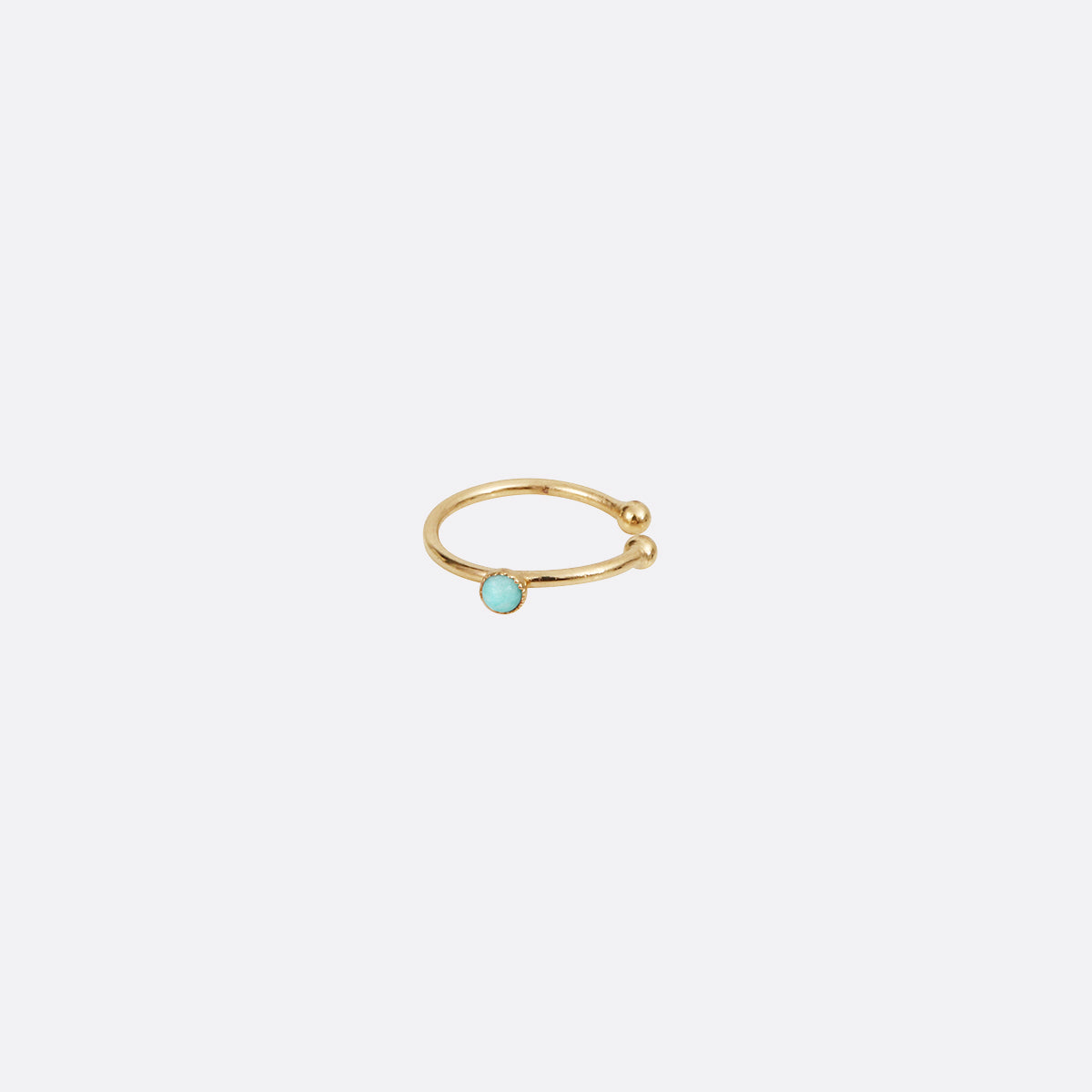 This jewel is distinguished by its oval design , highlighting a 2 mm round cabochon of amazonite , a stone renowned for its blue color and its beneficial properties. Amazonite is considered a joyful stone, evoking the joy of life and facilitating communication. In astrology, it is associated with Sagittarius .