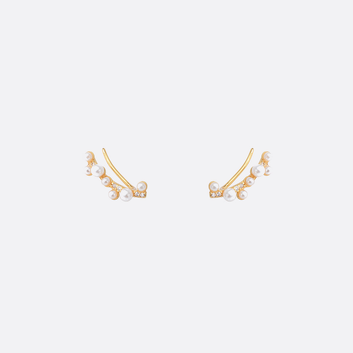 The earrings are adorned with white cultured pearls , adding a touch of softness and elegance. The cultured pearl is known for its soothing and feminine properties, facilitating the release of emotional blockages and symbolizing sincerity. In astrology, it is associated with the signs of Cancer , Libra and Pisces .