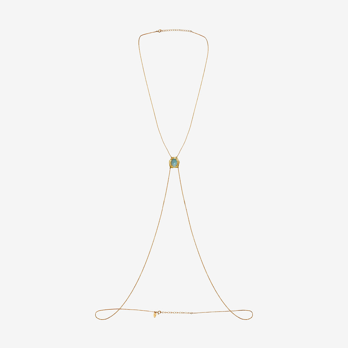 This body jewelry is distinguished by its delicate shape, with a fine chain that divides into two strands, joining at the central stone. It is adjustable from size XS to S , allowing for a comfortable and personalized fit. Whether you choose to wear it alone for a minimalist look or combine it with other accessories, it will enhance any outfit, whether everyday or for special events.