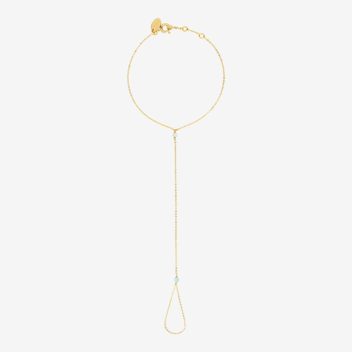 This model features an elongated shape with a minimalist design, highlighting the finesse of the chain. In the center, two amazonite stones bring a subtle and elegant touch of color. Known for its joyful properties, amazonite evokes the joy of living and facilitates communication, while being associated with the sign of Sagittarius .