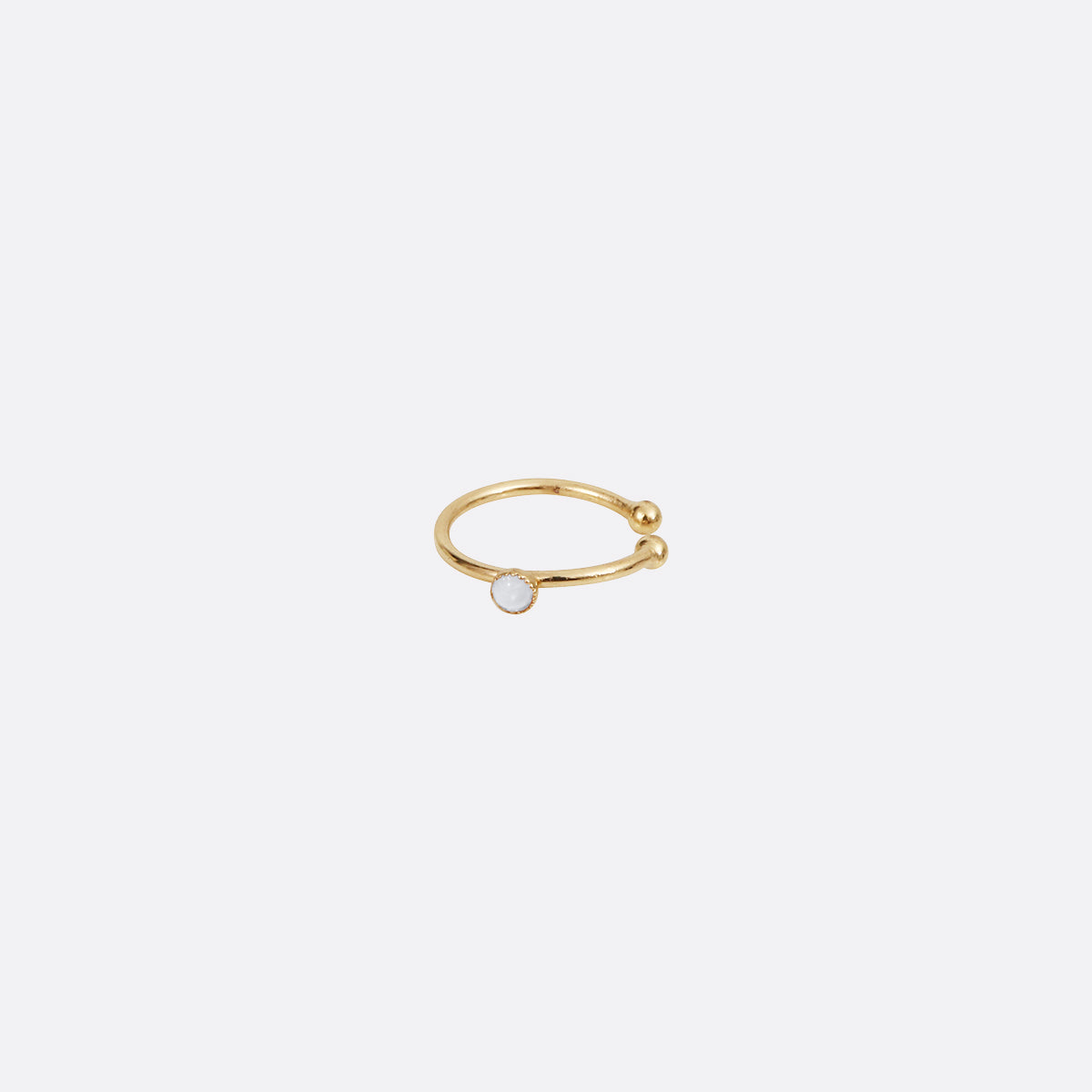 The golden ear cuff - CAB OVALE is a timeless piece that combines elegance and simplicity. Gilded with 24 carat fine gold , it is adorned with a round white mother-of-pearl cabochon with a diameter of 2 mm. This ring is designed to adapt easily to your ear thanks to its practical opening.