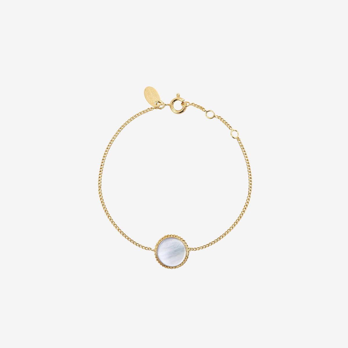 The golden bracelet - LADY is a refined jewel from the Caroline Najman brand, gilded with 24 carat fine gold. This emblematic piece from the Lady collection is distinguished by its 10 mm flat disc in Mother-of-pearl , a natural fine stone that evokes maternal love and tenderness.