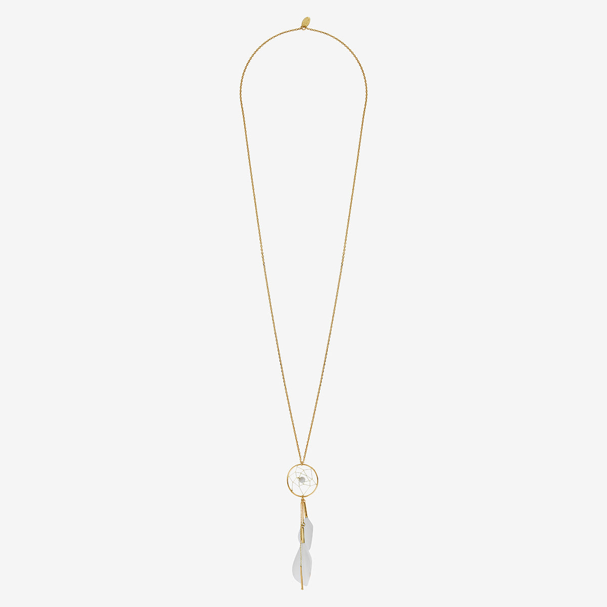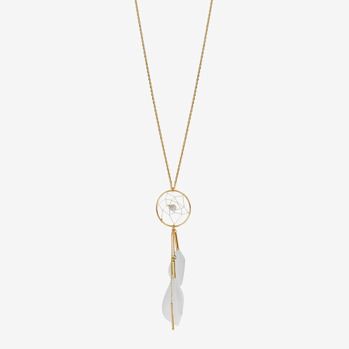 The golden long necklace - DREAM CATCHER by Caroline Najman is a piece of jewelry that combines elegance and symbolism. Made of 24-carat gold-plated brass , this necklace stands out with its dreamcatcher-inspired design, representing protection and serenity.