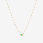 At the center of this necklace, a 3mm round green crystal catches the light and adds a fresh touch to the ensemble. The thin, delicate chain highlights the stone without overwhelming the look, while its spring ring clasp ensures practical and secure use.
