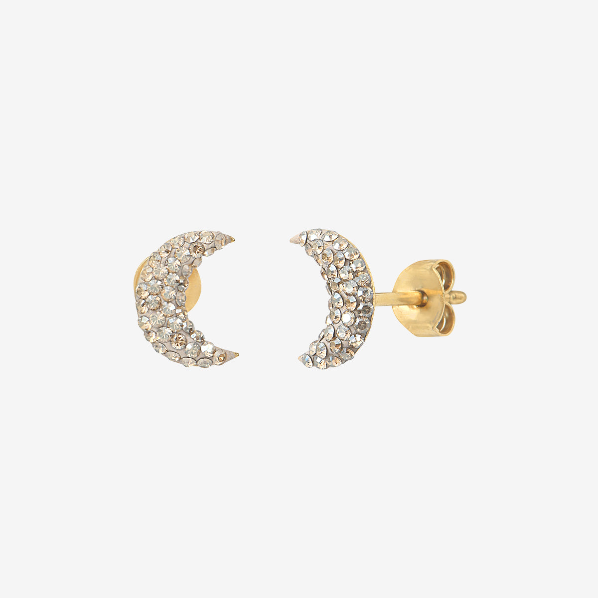 Conçues avec soin, elles arborent une forme délicate de croissant de lune, ornée de strass scintillants qui ajoutent une touche de glamour. Ce design ludique et intemporel s'adapte parfaitement à diverses occasions, que ce soit pour une sortie décontractée ou un événement plus formel.