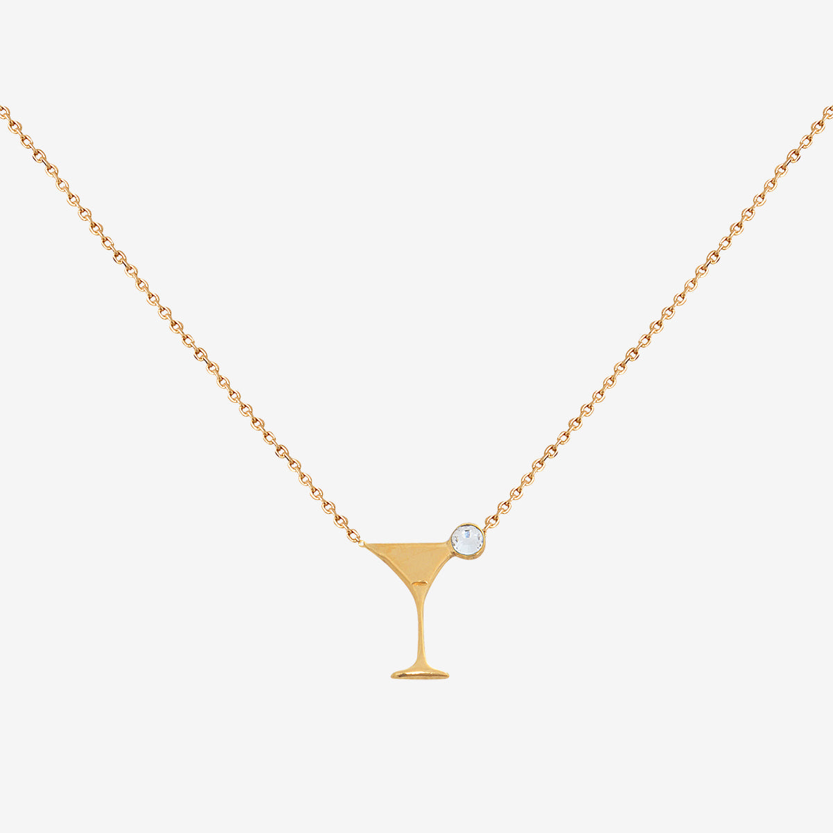 Ce collier se distingue par son pendentif en forme de verre à cocktail, orné d'un cristal blanc, qui ajoute une touche de brillance. Les cristaux, façonnés dans des usines d'Autriche, sont le résultat d'un processus de développement rigoureux et d'un contrôle qualité strict, assurant ainsi leur beauté et leur durabilité.