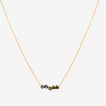 Le collier Ofée est doré à l'or fin 24 carats. Monté sur une chaine fine, il est orné de cinq petits cristaux sertis en son centre. Son design minimaliste en fait un bijou délicat et intemporel.
