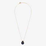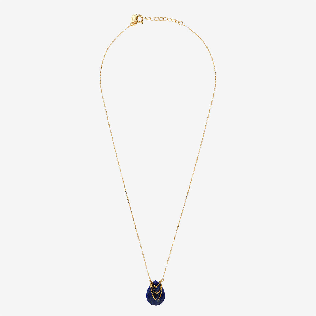 Il est agrémenté d'une pierre fine naturelle taillée à facettes et en forme de goutte. La pierre est ornée de chaînes, tels des colliers sur le décolleté d’une femme.